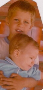 Daughter’s birthday falls at the end of May, and Second Son’s in the middle of June — so it’s more than high time to keep my promise. (Any parent knows you have to be fair to each child in turn, and you have to keep your promises.) So the little snapshot above is Daughter as a baby, held by her brother. Wow, they’re so cute — wish I could go back in time for a little cuddle with each of them.