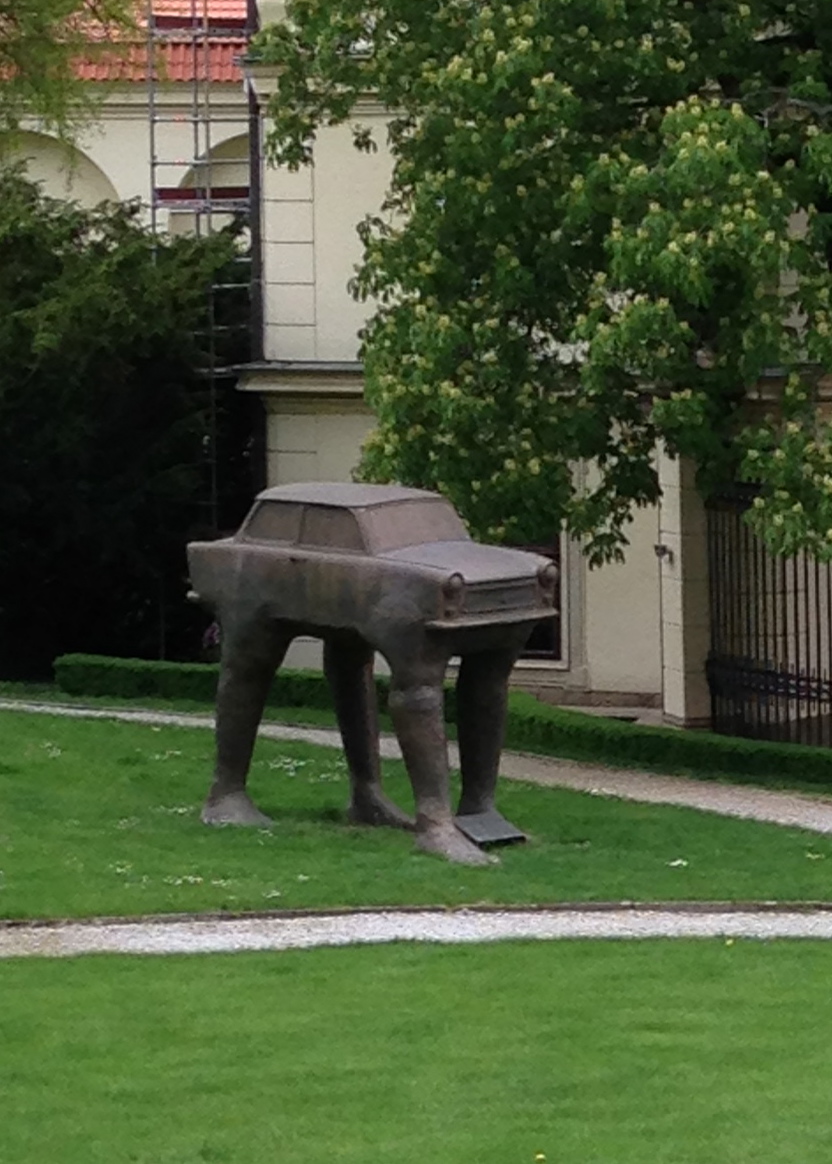 Tourists to Prague always view the dignified St. Wenceslas on his horse overlooking Wenceslas Square, and Cerny has had his fun with that too: here the venerable saint rides a dead horse. (According to legend, Wenceslas and his knights are sleeping beneath the mountain Blanik, but will wake and come to the nation’s rescue in its darkest hour. Apparently Czech citizens, having gone through decades of occupation by the Germans and then by the Soviets, joke in a grumble about how much worse it has to get before they finally wake up. Perhaps this is Cerny’s version of that joke?)