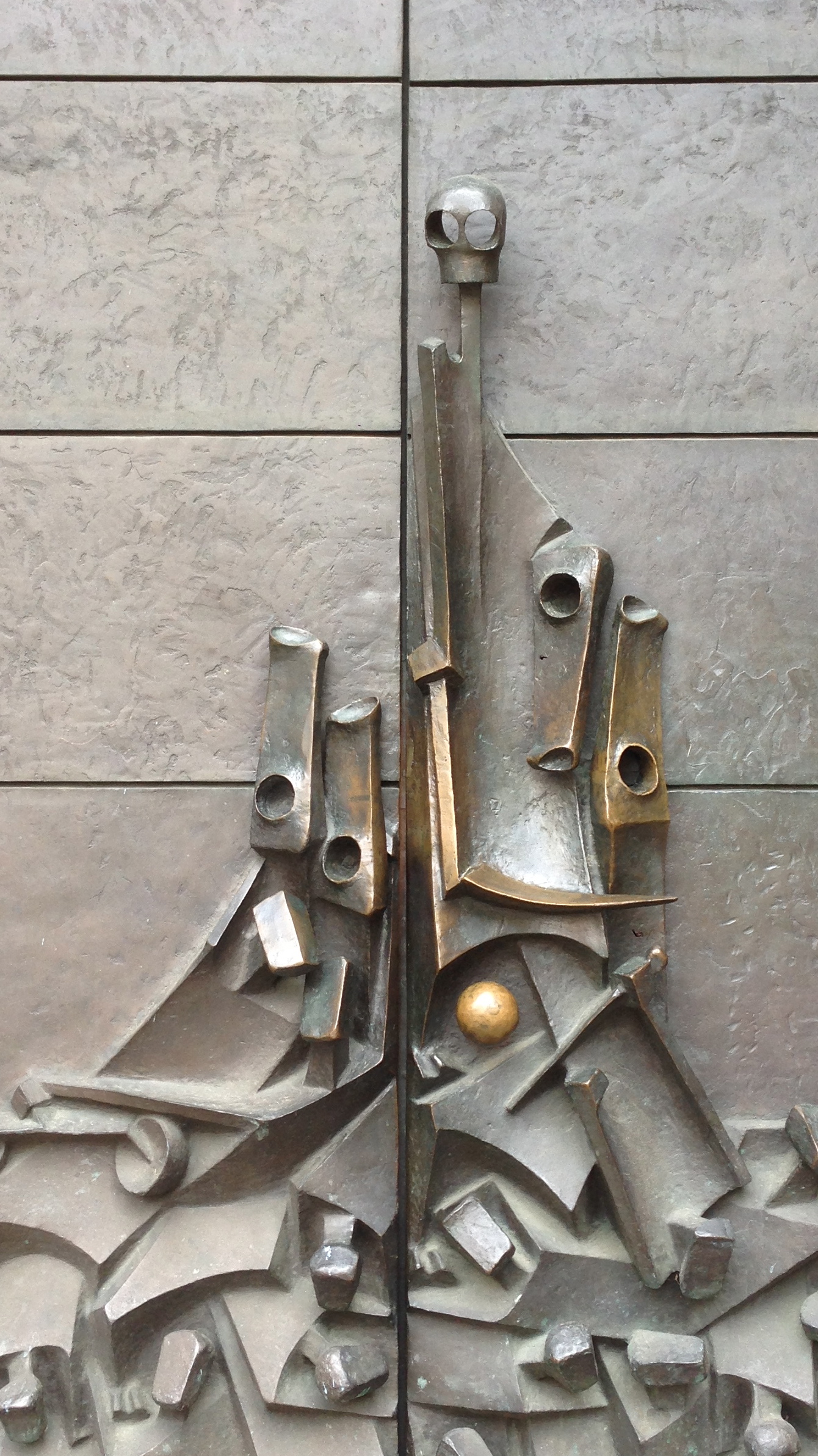 And one more piece I want to share with you. It’s a side door at the St. Sebaldus Church (Nuremberg). I wish I knew more about it. In the next photo, please look closely at the handle. One often sees the Death figure in old art, but here’s a contemporary rendering, one that visitors and parishioners have to grab to enter the truths inside. Memento Mori.