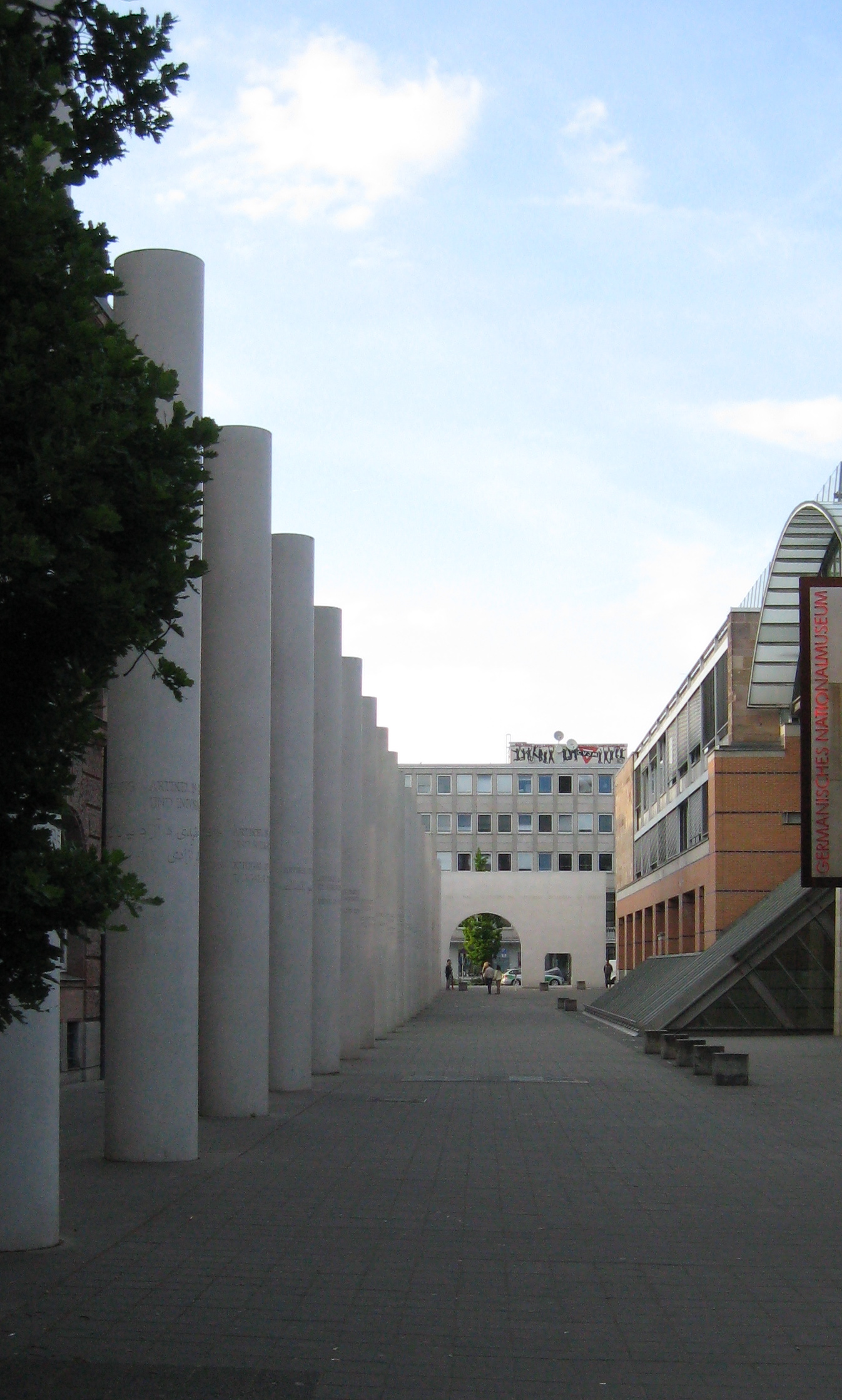 The long row of marble pillars (below) in Nuremberg, commemorating the 1948 Declaration of Human Rights, with specific statements chiselled into them in various languages, speaks strongly of commitments made post the terrible time of the Second World War. (